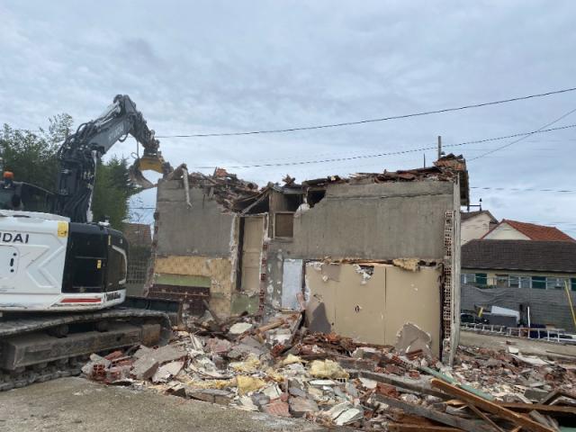 DEMOLITION D'UN PAVILLON A PARAY VIEILLE POSTE A L'AIDE DE PELLE MECANIQUE